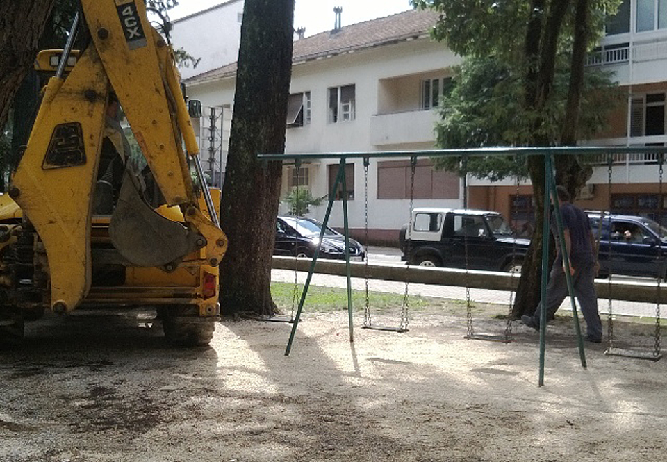 Usljed cestih i obilnih kisa doslo je do spiranja tla pa su radnici sa bagerom nasuli oko kubik rizla kod mobilijara u parku gdje se najcesce i zadrzavaju brojni malisani, koji posjecuju parkic.