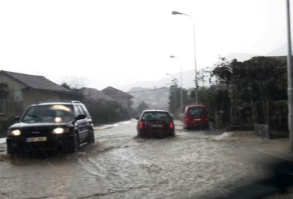 Velike količine padavina danas popodne izazvale su probleme u odvijanju drumskog saobraćaja. Za nešto malo više od sat vremena palo je 36 litara kiše po metru kvadratnom. Toliku količinu vode nisu mogli da prihvate atmosferski kanali. Kod prodavnice ˮStihlˮ opreme u Kalimanju voda je snagom bujice tekla na magistralu i slijevala se put obale,a magistralnim putem kroz Tivat voda je na pojedinim dionicima prelazila dvadeset santimetara.