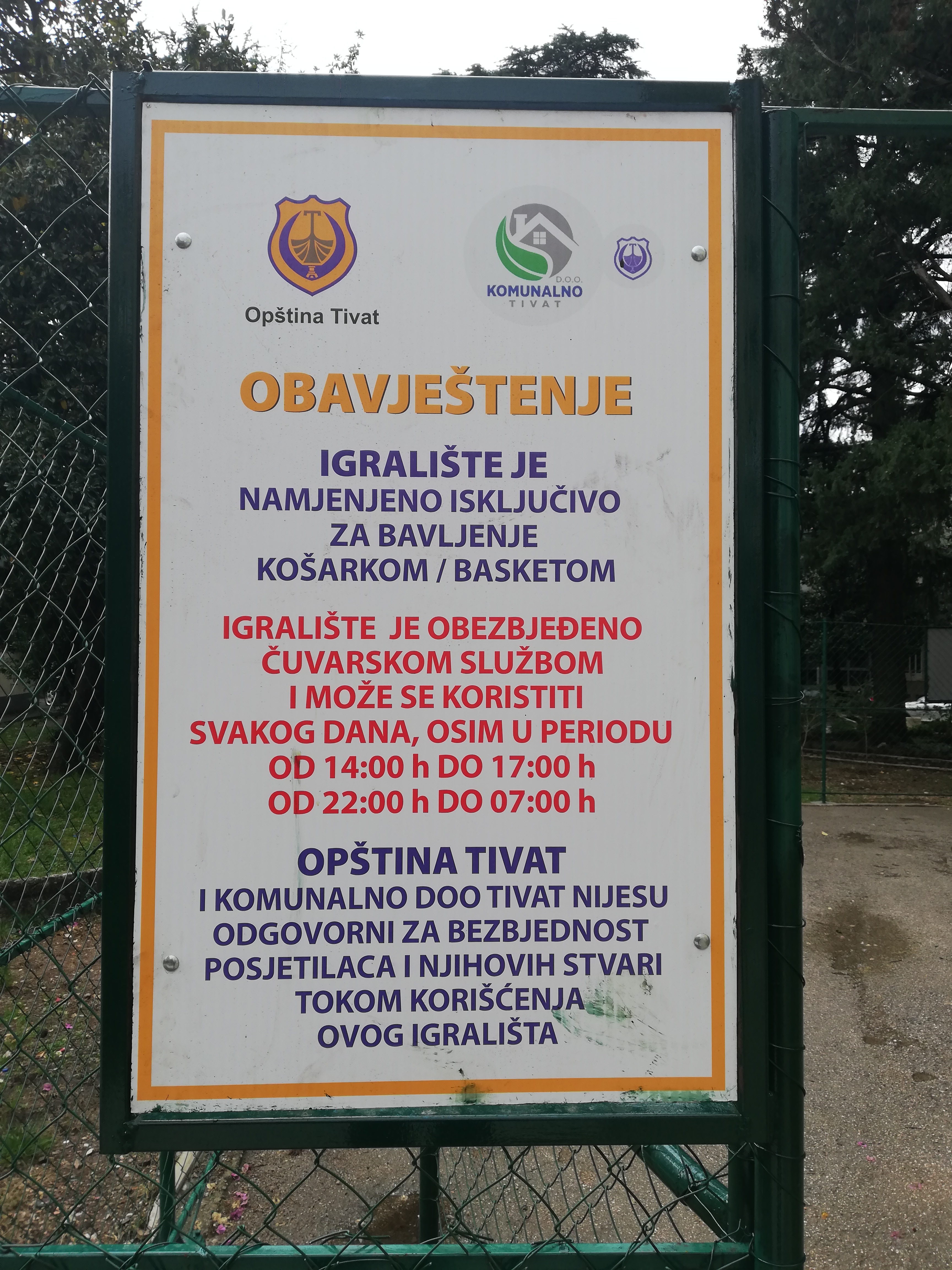Zbog neposredne blizine stambenih zgrada, molimo korisnike ovog košarkaškog igrališta da poštuju kućni red i igralište koriste u vremenu i na način kako je predviđeno na info tablama koje su postavljene na terenu