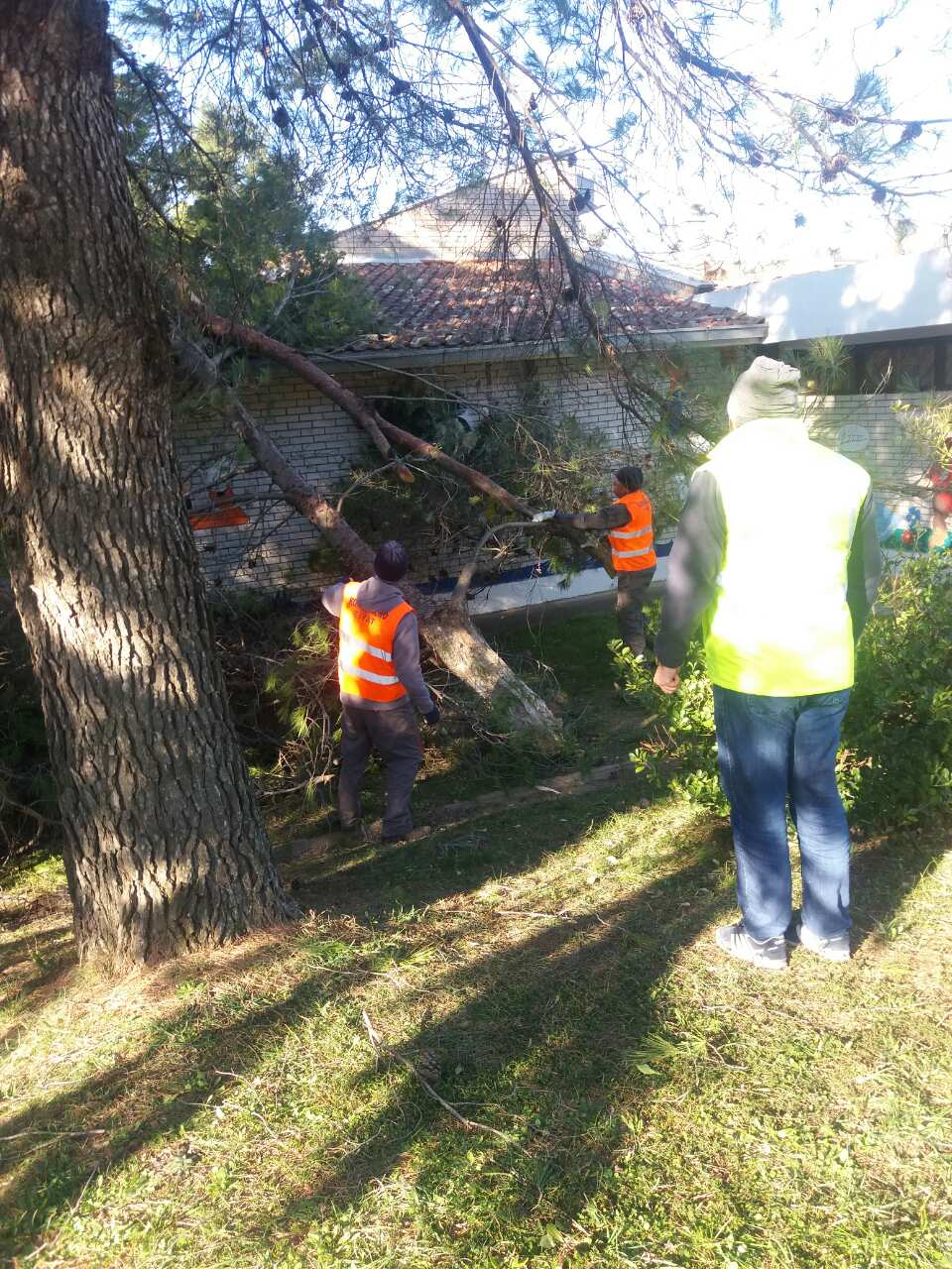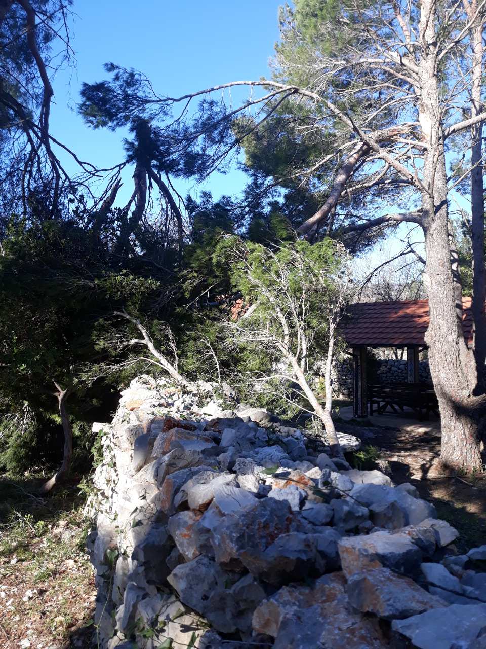 Protekle noći od 4 h ekipe radnika su na terenu angažovane na uklanjanju poslijedica olujnog vjetra. Na krov vrtića u Donjoj Lastvi palo je veliko stablo čije uklanjanje je u toku. Na sreću nije bilo povrijeđenih. Stabla su padala i u Gardiošnici i u Krtolima.