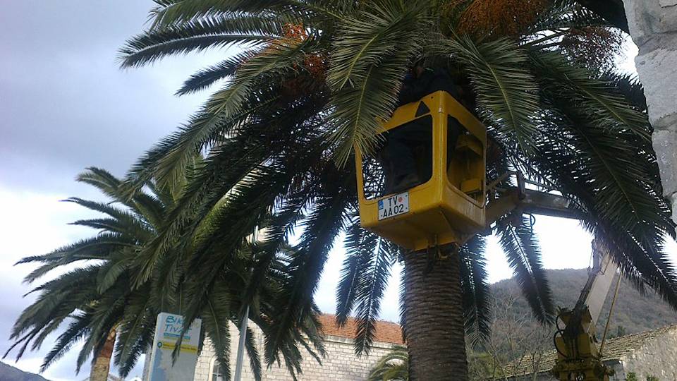 Danas su naši radnici otpočeli rezidbu palmi duž obale u Donjoj Lastvi na potezu od crkve Sv. Roka do ronilačkog kluba „Neptun“. Za poslove orezivanja na navedenom potezu bice angažovano specijalno vozilo sa hidrauličnom platformom i 5 radnika. U narednim danima, ako vremenske prilike budu dozvoljavale, bice orezano preko 100 palmi na javnim površinama u gradu.