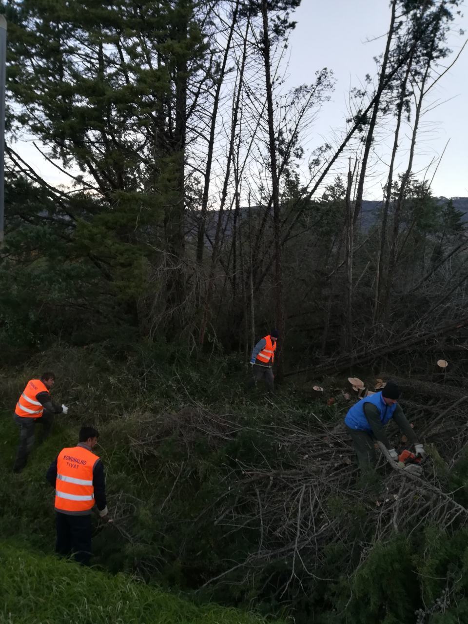Oko 6, 30 jutros na magistralnom putu, na potezu od ulaza na Aerodorom do raskrisnice za Gradiošnicu, pao je bor visine 35-40 metara. Osam radnika sa kamionom i utovarnom lopatom odmah su izašli na teren i za desetak minuta su oslobodili jednu traku kako ne bi bilo dužeg zastoja u saobraćaju. U roku od 25 minuta stablo je u potpunosti uklonjenjeno sa saobraćajnice pa je saobraćaj nastavio nesmetano da se odvija.