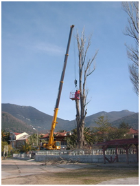 Lijep zimski dan radnici našeg poreduzea iskoristili su da obore nekoliko visokih stabala koja su zbog starosti predstavljala opasnost po prolaznike. Kako bi uklonili trideset metara visok bor u neposrednoj blizini Doma zdravlja angazovali smo dizalicu sa kranom podgoričke firme „Koprivica“, a u uklanjanju stabla učestovao je i hercegnovski alpinista Dejan Verigo. Akcija je protekla bez ikakvih problema.